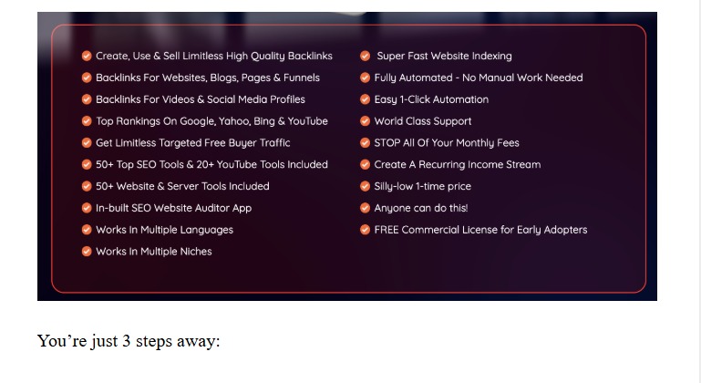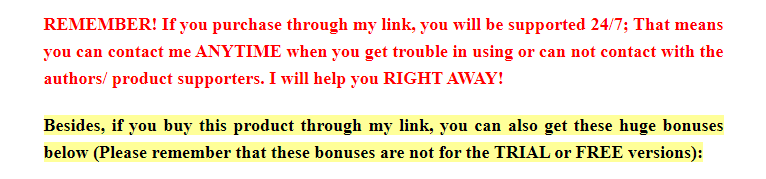 | Bonuses | Yes, Huge Software Bonuses >>Check Below<< |